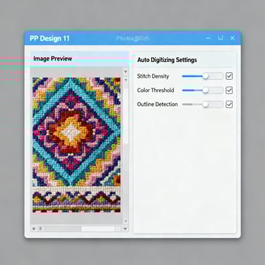 Si vous préférez une approche plus rapide ou si votre image est une photo réaliste, PE Design 11 propose la fonction PhotoStitch qui convertit automatiquement les images en motifs de broderie avec un rendu photoréaliste.