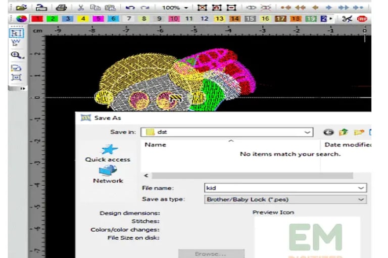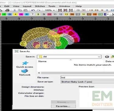 Une fois qu'un motif a été converti d'un format riche (comme EMB) vers DST, vous perdez les informations de couleur et d'édition. Si vous devez modifier le motif plus tard, vous aurez besoin du fichier original, pas de la version DST.