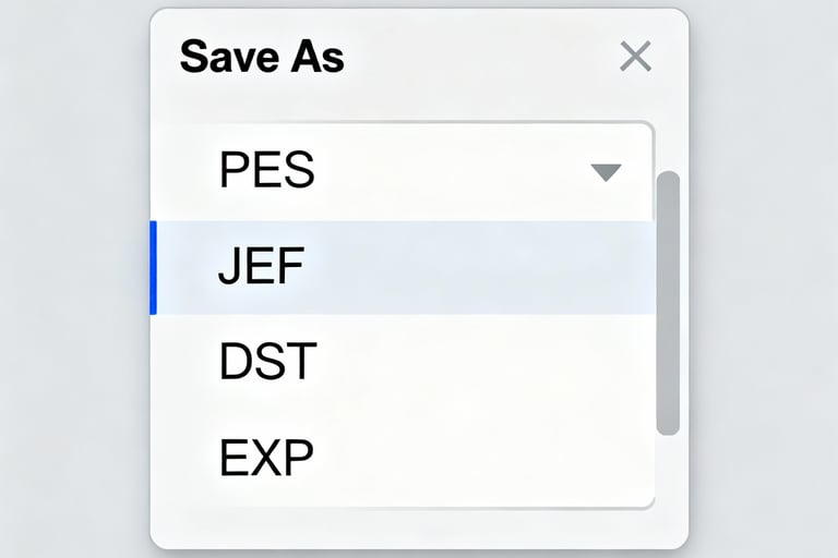 Connaissez votre machine : Avant de télécharger ou de convertir, vérifiez quels formats votre machine supporte. Les utilisateurs Brother doivent utiliser PES, les utilisateurs Janome ont besoin de JEF, et les configurations commerciales nécessitent souvent DST.